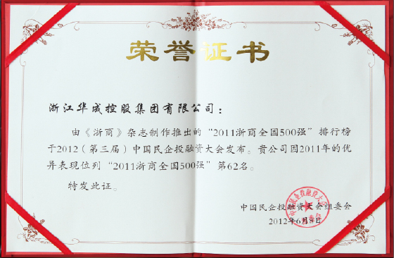 華成集團以穩健的發展和雄厚的實力,連續多年被評為中國民企500強,浙商全國500強,浙江省百強企業